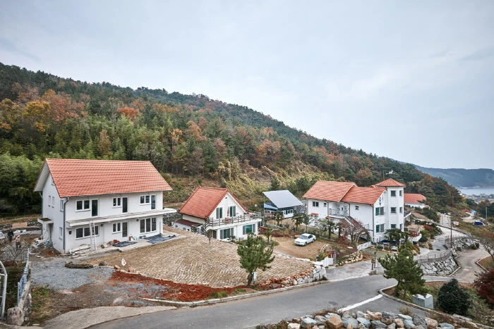 독일마을 건축은 교포들이 직접 독일의 재료를 수입하여 전통 독일식 주택을 신축하고 있는데 지금은 15동 정도가 완공되어 독일 교포들이 생활하고 있으며 독일에 가 있는 동안은 관광객을 위한 민박을 운영하고 있기도 하다. 바로 앞으로 펼쳐진 방조어부림의 시원한 바다와 남해안에서 가장 아름다운 해안 드라이브 코스인 물미해안도로가 있다.